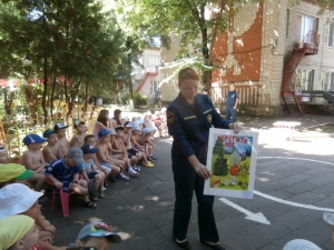 В первой части программы ребят ждала беседа на тему «Огонь – друг, огонь – враг». Воспитанники детского сада с легкостью назвали полезные свойства огня, затем стали разбираться, почему же огонь становится для человека врагом? И здесь «подсказками» для ребят были работы лауреатов конкурса «Служба спасения 01», иллюстрирующие причины возникновения пожара: оставленный без присмотра огонь, неисправные электроприборы, шалость детей с огнем.