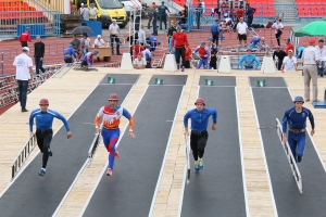 Сегодня, 23 июля, на Театральной площади г. Саратова и на стадионе «Локомотив» проходят первые состязания по пожарно-спасательному спорту в рамках Чемпионата России. Спортсмены из 22 регионов страны соревнуются в подъеме по штурмовой лестнице. Первые забеги прошли среди юношей и девушек, среди мужчин и женщин. Второй год подряд женщины принимают официальное участие в Чемпионате России наряду с мужчинами.