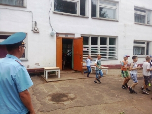 В рамках мероприятий была проведена отработка эвакуации детей по сигналу автоматической пожарной сигнализации, дети, совместно с педагогами проследовали на футбольное поле, где, по итогам эвакуации был сдан рапорт начальнику лагеря и представителям пожарной охраны.