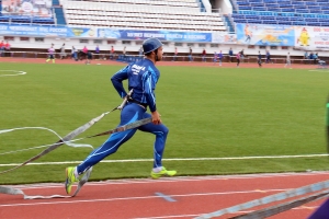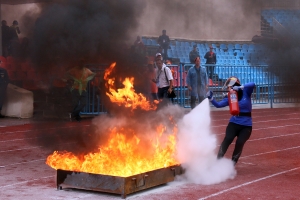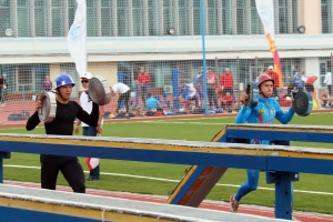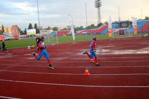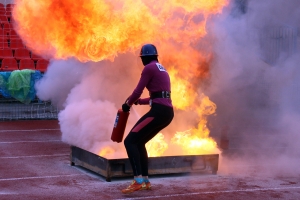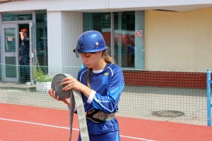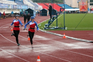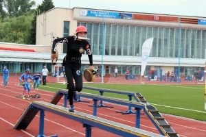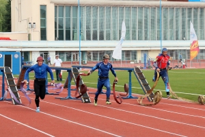 Свое мастерство участники Чемпионата показали и в пожарной эстафете. Пожарная эстафета состоит из 4-х этапов по 100 метров каждый. Спортсмены с эстафетой (пожарный ствол) в руках проходят четыре этапа. На первом этапе спортсмен поднимается на крышу домика при помощи лестницы-палки, на втором этапе преодолевает забор, высотой 2 метра. На третьем этапе, подхватив рукава и пробежав по буму, спортсмен присоединяет рукава к разветвлению, прокладывает рукавную линию. Финальный - четвертый этап оканчивается зрелищным действием - участник огнетушителем тушит горящий противень.