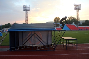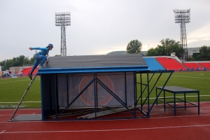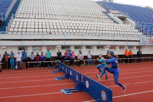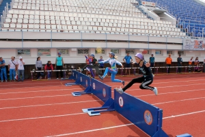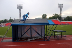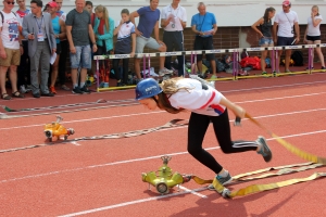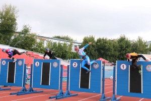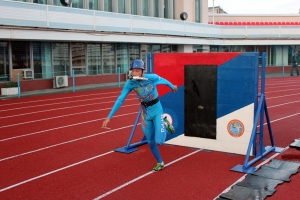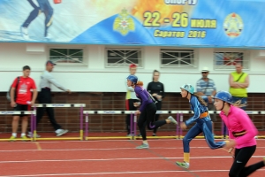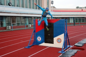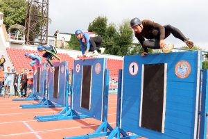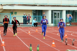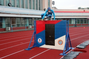 100-метровая полоса с препятствиями требует от спортсменов полной концентрации сил и внимания. Ведь для того, чтобы успешно ее преодолевать, необходимо обладать скоростью и невероятной ловкостью. Через 23 метра после старта спортсмен преодолевает 2-х метровый забор, подхватывает 2 пожарных рукава весом 5 кг., пробегает по бревну (бум), после чего присоединяет один рукав к разветвлению, стоящему на беговой дорожке, а другой к стволу, находящемуся за спиной с момента старта, затем пересекает финишный створ. 100-метровка проходит очень динамично. Спортсменка из Саратова - Игумнова Алина, показала сегодня лучший результат в своей возрастной группе и стала Чемпионкой России.