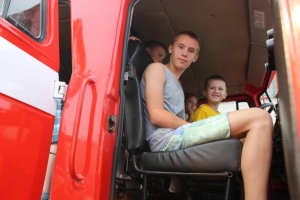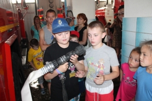 Эмоции от увиденных пожарных автомобилей одинаковы были для всех, восторг на лицах детей и взрослых. С интересом слушая экскурсовода о пожарно-спасательной технике и оборудовании. При этом экскурсия стала еще и познавательной, не много они знали о работе спасателей. Но благодаря этой встрече экскурсанты знают все от момента поступления звонка на пункт связи до выезда пожарного автомобиля. После рассказа экскурсовода все посидели в кабине пожарного автомобиля, подержали пожарно-техническое вооружение. Вопрос заданный одним из присутствующих о тренировках пожарных, привел к тренировочной башне, расположенной на территории части, где в это время спасателями отрабатывались и закреплялись умения и навыки.