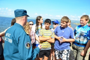 Для этого в рамках акции «Вода – безопасная территория» с детьми из детских оздоровительных лагерей Шарыповского района Красноярского края были проведены теоретические и практические занятия на берегу озера. Ребята узнали о том, что нельзя купаться в незнакомых водоёмах без присмотра взрослых, нельзя входить в воду, не умея плавать, нырять в незнакомых местах, заплывать далеко от берега. Сотрудники инспекции по маломерным судам МЧС России показали правильность действий по спасению утопающего и оказанию первой медицинской помощи человеку, попавшему в беду. Также присутствующих познакомили с правилами безопасного поведения на борту маломерного судна. Основные из них – необходимо надевать на себя спасательные жилеты, производить посадку в лодку по одному человеку, категорически запрещено ходить по судну во время движения, меняться местами и садиться на борта лодки. Полученные теоретические занятия ребята отработали на практике, участвуя в эстафете. Дети одевали спасательный жилет, и с помощью спасательного устройства «Конец Александрова» спасали условного утопающего.