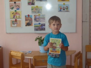 После изучения нового материала инспектор предложила дошколятам игру «Слушай и повторяй», где детский коллектив разделился на пары и, выбрав по две картинки, дети рассказывали друг другу о нарушении правил безопасности на выбранной ими иллюстрации.