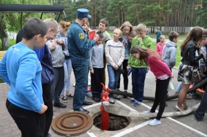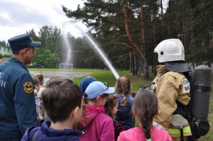 Ребят пригласили на площадку, где их уже ждала развернутая специальная техника, которую используют пожарные в своей нелегкой работе. Детей познакомились с устройством пожарной машины, экипировкой пожарных, для них состоялся показ практических приемов работы с аварийно-спасательным оборудованием и инструментами. Все это вызвало неподдельный интерес. В ходе проведения мероприятия были проведены беседы о соблюдении правил безопасного обращения с огнем, правил поведения на воде. Ребятам рассказали о безопасном поведении в жаркий летний период в лесу, о правилах поведения с огнем, о мерах осторожного поведения на открытых водоемах. Дети узнали, какую опасность таят в себе игры и забавы с огнем и как правильно вести себя, если беда все-таки случилась. Ребята приняли активное участие в беседе и охотно поделились своими знаниями о том, как надо себя вести в чрезвычайной ситуации.