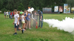 Для того чтобы все пребывающие в оздоровительном лагере смогли отработать правильные действия при пожаре на практике, сотрудники МЧС провели с детьми и педагогическим коллективом учебную эвакуацию. После успешного завершения тренировки ребятам продемонстрировали действие углекислотного огнетушителя и все желающие смогли опробовать его в действии. Дети поблагодарили офицеров МЧС за необычный познавательный урок и дали честное слово, что всегда будут соблюдать правила пожарной безопасности.