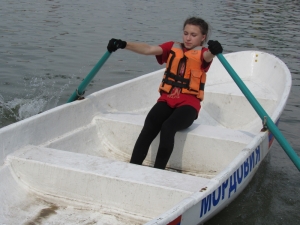 Далее на водоёме возле стадиона «Старт» команды показали своё мастерство в гребле на лодках. Погодные условия ничуть не помешали, а, наоборот, придали некий реализм. Ведь, «юный водник», в первую очередь, это спасатель на водах, будущий подготовленный специалист, который сможет прийти и оказать помощь в любой ситуации и в любых условиях.