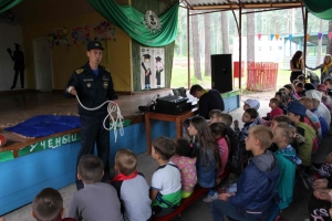 В рамках акции «Вода – безопасная территория» томские спасатели провели занятие по безопасности на воде с отдыхающими детского оздоровительного лагеря «Юность».
