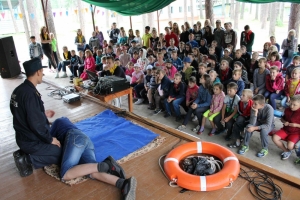Сотрудники государственной инспекции по маломерным судам МЧС России по Томской области рассказали детям о правилах поведения и мерах безопасности на водоемах, способах оказания помощи людям на воде, а также продемонстрировали при помощи каких подручных средств можно помочь утопающему. После все желающие смогли закрепить пройденный материал на практике: бросить спасательный круг и «конец Александрова».