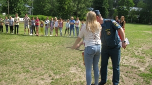 После проведения учебной эвакуации, с детьми педагогическим коллективом и обслуживающим персоналом был проведён инструктаж по обеспечению безопасности детей во время летнего отдыха. Дополнительно сотрудники МЧС провели беседу-инструктаж с коллективом лагеря по алгоритму вызова экстренных оперативных служб. Ребята проявили особый интерес к теме взаимодействия «тревожных» служб, алгоритму передачи информации и последующему реагированию. На свои вполне осмысленные вопросы они получили исчерпывающие ответы.