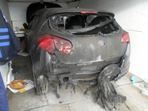 В ожидании пожарных поливайте водой стоящие рядом автомобили, чтобы огонь не перекинулся на них или откатите их в сторону с помощью прохожих и водителей. Если в кабине горящего автомобиля находится человек, а двери заклинило, то взломайте двери или выбейте стекло (монтировкой, камнем или ногами). Вытащите пострадавшего из машины, вызовите «скорую» и окажите ему первую помощь или отправьте его в ближайший медпункт на первой же остановленной вами машине, запомнив или записав ее номер.
