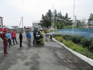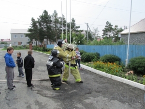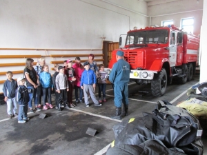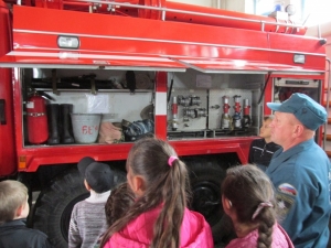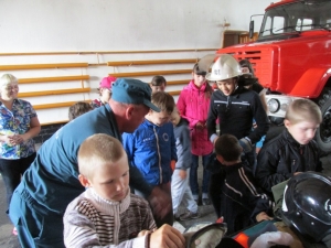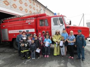 Гостями стали ребята с разновозрастной группы дневного пребывания автономное учреждение комплексный центр социального обслуживания населения Бердюжского муниципального района. Экскурсия по части вызвала живой интерес у детей. Начальник караула Александр Сидоров продемонстрировал спасательную технику, дыхательные аппараты, специальную одежду пожарного и гараж, где стоят пожарные машины. Ребята с неподдельным восторгом садились в кабины огромных машин, представляя себя в роли пожарного. Также детям объяснили и показали чем и как оборудованы машины, для чего служит то, или иное многочисленное пожарно-техническое вооружение. Рассказали маленьким гостям и о том, чем вооружены спасатели для борьбы с огненной стихией. Это произвело сильное впечатление на ребят и даже нашлись желающие примерить одежду пожарного.