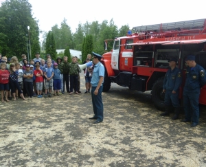 Занятия по пожарной безопасности с показом пожарно-технического вооружения состоялись в летнем оздоровительном лагере «Клен». Пожарные 20 пожарной части провели тренировочные занятия по эвакуации отдыхающих и обслуживающего персонала. Девчонкам и мальчишкам рассказали о вреде и пользе огня, поговорили о последствиях детских шалостей с огнем и о том, как вести себя, если возникла ситуация задымления или возгорания. В рамках Года пожарной охраны дети познакомились с деятельностью подразделений МЧС, с опасной и трудной работой огнеборцев, повторили номера вызова пожарной охраны и поговорили о недопущении ложных вызовов. С удовольствием юные гости рассматривали пожарные автомобили, всем хотелось попробовать себя в роли брандмейстеров. Посидеть в пожарном автомобиле и подержать пожарный ствол смог каждый желающий.