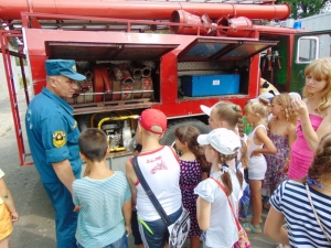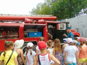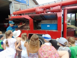 Год пожарной охраны: ребята, отдыхающие в пришкольном лагере, побывали в гостях у пожарных города Гусь-Хрустального