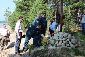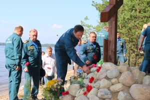 Сегодня к поклонному кресту, установленному в память о детях, погибших во время шторма на Сямозере, были возложены цветы