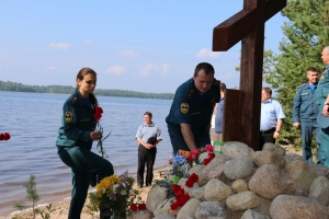 Первый заместитель Главы Республики Карелия Олег Тельнов, представители органов власти, специалисты МЧС по Карелии, участники поисково-спасательной операции и жители близлежащих деревень вновь собрались сегодня, чтобы возложить цветы к подножию креста и отдать дань памяти всем невинно погибшим детям.