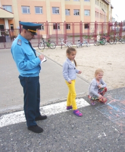 В летнем оздоровительном лагере «Спортландия» правила безопасности дети нарисовали на асфальте. В акции «Мы за безопасность» приняли участие пожарные и полицейские Муравленко.