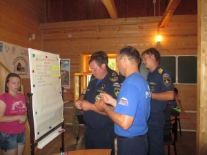 Во второй половине дня тема борьбы с пожарами продолжилась в форме интерактивной игры, в ходе которой двум командам необходимо было спасти деревню и природные комплексы от пожаров, а доблестным пожарным найти очаг возгорания и вовремя ликвидировать его.