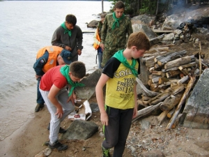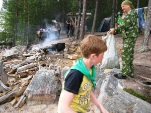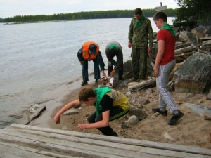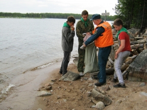 В деле очистки береговой зоны водоемов Кольского Заполярья принимают участие не только представители спасательного ведомства. В июле к акции присоединились педагоги и воспитанники туристского палаточного лагеря «Остров сокровищ». Вместе с инспекторами «водных дорог», как по образу инспекторов ГИБДД, называют представителей ГИМС, ребята освобождали от мусора остров Лайдасалма на озере Ковдозеро.