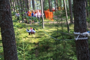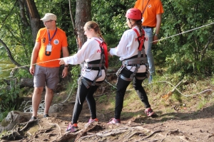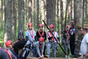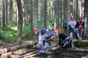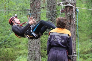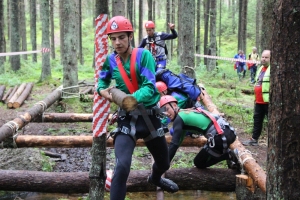 Финиш уже близок, остаётся последний этап – оказать первую медицинскую помощь. Одному из участников команды накладывают повязку на голову и укладывают его на самодельные носилки, сооружённые из одеяла и спасательных верёвок. Подхватив перевязанного и спеленатого «пострадавшего» и преодолев последние метры, участники пересекают финишную черту. Трасса протяжённостью чуть более трёх километров пройдена – можно отдохнуть.