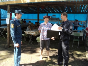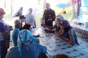 Но главной темой разговора пожарных с детьми стало соблюдение правил пожарной безопасности в палаточном лагере. Пожарные рассказали ребятам об основных причинах возникновения пожаров, об оказании доврачебной помощи пострадавшим в огне, а также совместно обсудили современные методы борьбы с разбушевавшимся огнем. Также внимание уделялось вопросу расположения костра для приготовлении пищи в районе лагеря, соблюдению требований пожарной безопасности как детьми, так и вожатыми при обращении с открытым огнем и грамотным действиям персонала лагеря по обращению с первичными средствами пожаротушения при ликвидации возгорания. Дополнительно при инструктаже рассматривался вопрос о соблюдении требований пожарной безопасности в лесах.