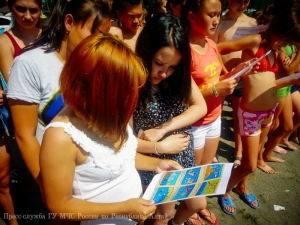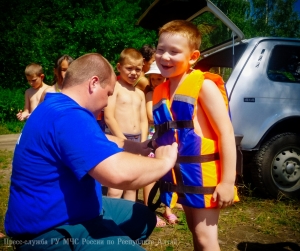 10 июля инспектор Центра ГИМС МЧС России по Республике Алтай Алексей Бондаренко подробно рассказал ребятам о том, как пользоваться спасательным кругом, чтобы спасая утопающего не причинить ему физического вреда, как вытягивать тонущего из воды с помощью веревки «конец Александрова». Инспекторы Юрий Гонохов и Евгений Зырянов раздали всем участникам мероприятия цветные листовки о правилах безопасного поведения на воде, затем ребята приступили к применению полученных знаний на практике. На детей, которые не умели плавать, инспекторы надевали спасательные жилеты и, помогая им удерживаться на воде, учили их плавать.