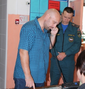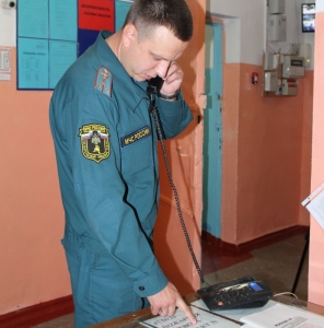 Далее, инспектор пожарной безопасности Игорь Шукис проверил по телефону - дошел ли сигнал до диспетчера пожарной охраны.