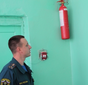 После проверки работоспособности пожарной сигнализации, инспектор оценил наличие исправных первичных средств пожаротушения, прошел по путям эвакуации, рассмотрел информационные табло. Проверил качество инструктажа с обслуживающим персоналом учебного заведения, задав им вопросы по пожарной безопасности и действиям в случаях возникновения пожара.