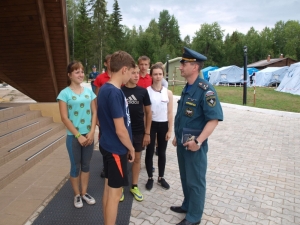 Сегодня в конгресс-холле Финно-угорского этнопарка звучала «пожарная тревога». Участники V всероссийского полевого лагеря «Юный пожарный» проходили очередной этап соревнований «Учебная эвакуация из помещений лагеря». Эвакуация по сигналу «пожарная тревога» проводилась из помещения здания сложной планировки всеми членами команды, используя выданный на старте план эвакуации. Каждой команде, находясь в помещении, необходимо было по звуковому оповещению пожарной сигнализации эвакуироваться наружу из здания в заранее обозначенное место. Чтобы ребятам сориентироваться в помещении были установлены флажки, которые обозначали зоны задымления и высокой температуры. Покинув здание и прибыв в определенное место, капитан команды докладывал судье соревнований о количестве прибывших, пострадавших, отсутствующих.