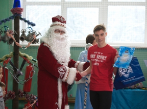 После стартов всех участников соревнований ждала необычная елка, изготовленная из огнетушителей, разветвлений, пожарных рукавов. Украшением для нее служили бусы из пожарного оборудования - карабинов и спасательных веревок. У пожарных даже Дед Мороз со Снегурочкой появились не после обычного приглашения детей, а по сигналу тревоги. Они вручили призы, дипломы и сладкие подарки юным спортсменам.