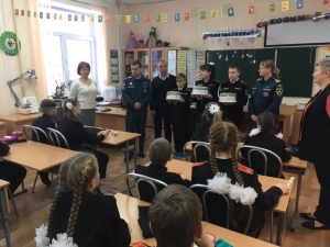 Кадетам рассказали про профессию пожарного-спасателя МЧС России, о профильных высших учебных заведениях МЧС России, порядок поступления и прохождения службы в МЧС России, также проведена беседа по профилактике пожаров, в том числе по причине детской шалости с огнем.