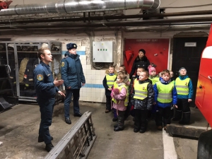 Экскурсия в 139 пожарной-спасательной части отряда государственной противопожарной службы Подпорожского района для ребят из Подпорожского детского сада №4 началась с впечатлений и эмоций, которых не передать. Ребят встретили пожарные и провели экскурсию по зданию. Мальчишки и девчонки увидели специальные костюмы и атрибуты, которые нужны при тушении пожара.
