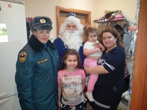В награду за активность ребятишкам и просто в связи с праздниками Спасатель Дед Мороз вручал всем без исключения сладкие подарки и новогодние сувениры. А инспекторы пожарной охраны вручали родителям специально разработанные памятки о мерах безопасности при использовании пиротехники.