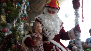 Условно вызывая пожарных по телефону и проговаривая правильный алгоритм, детвора неожиданно для себя вызвала… Деда Мороза – Спасателя! Из-за дверей музыкального зала послышалось: «Иду, иду!» В зал вошел дедушка, облаченный не только в традиционный красный кафтан: на голове у Деда Мороза-Спасателя красовалась красная пожарная каска, из-под которой благородно выбивалась белоснежная кудрявая борода. Дети не скрывали восторга! Дед Мороз, роль которого профессионально играл сотрудник Челябинского пожарно-спасательного Иван Черногубов, быстро взял ребят в оборот.