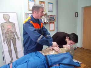 Особое внимание в ходе занятия Сергей Михайлович уделил правилам оказания первой помощи при различных травмах, переломах, кровотечениях, ожогах, утоплении.