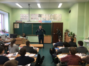 Сотрудники МЧС России пообщались с обучающимися Рощинской школы Выборгского района на предмет пожарной безопасности