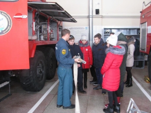 В рамках Года предупреждения чрезвычайных ситуаций сотрудники Главного управления МЧС России по Белгородской области на постоянной основе проводят профилактическую работу с подрастающим поколением. Проводятся познавательные экскурсии и викторины, дни открытых дверей, организуются встречи детей с действующими сотрудниками МЧС и ветеранами, устраиваются конкурсы и соревнования, к которым привлекаются ребята разных возрастов. 30 января, в Алексеевском районе Белгородской области, ученики Матрёно - Гезовской средней общеобразовательной школы побывали в гостях у огнеборцев пожарно-спасательной части № 58. Экскурсия началась с осмотра помещений пожарной части. В ходе встречи ребята увидели служебные помещения, познакомились с порядком несения службы и организацией быта пожарных. Начальник отдела надзорной деятельности и профилактической работы Алексеевского района Николай Харланов провел с детьми профилактическую беседу, напомнил ребятам правила, которые следует соблюдать, чтобы не допустить возгораний, рассказал об огнетушителях и других средствах пожаротушения. Также, школьники узнали об эвакуационных выходах и о том, как действовать, если пожар все же случился. После беседы, начальник дежурного караула Александр Лавров рассказал учащимися о работе огнеборцев. Детям продемонстрировали имеющиеся на вооружении части пожарные автомобили и пожарно-техническое вооружение, показали работу гидравлического аварийно-спасательного инструмента, боевую форму одежды и снаряжение пожарного. Ребятам даже удалось примерить боевую форму пожарного, но, не смотря на то, что она оказалась большой по размеру, процесс облачения вызвал положительные эмоции у всех экскурсантов.