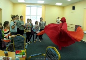 Но дети оказались не робкого десятка, сразу пошли в атаку: мальчишки быстро заприметили на окне аквариум, воду из которого можно использовать для тушения, и горшки с землей. Девочки применили для тушения подаренные пледы – накрыли ими Огонь. Не забыли и в пожарную охрану позвонить.